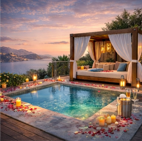 Alan tamamen size özeldir. Ortak havuz, kalabalık ortak alanlar, gürültü ve “başkalarına göre” plan yapma zorunluluğu ortadan kalkar. Bu da balayını, gerçekten dinlendirici ve romantik bir deneyime dönüştürür.Kısaca size özel bir tatil anlayışıdır.
